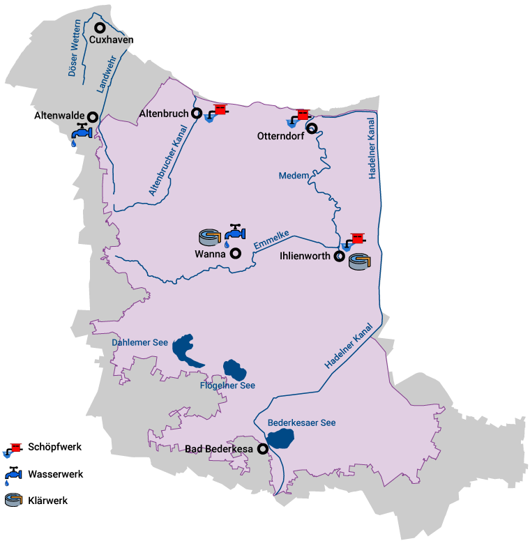 Die folgende Karte (grau dargestellt) zeigt den Grenzverlauf der Wasser- und Bodenverbände Otterndorf.